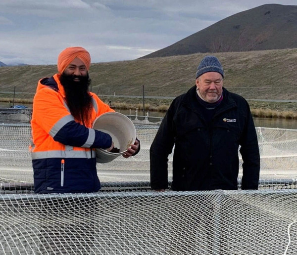 Visiting Benmore Canal in 2023, Al is pictured with Manpreet Singh, Farm Manager.